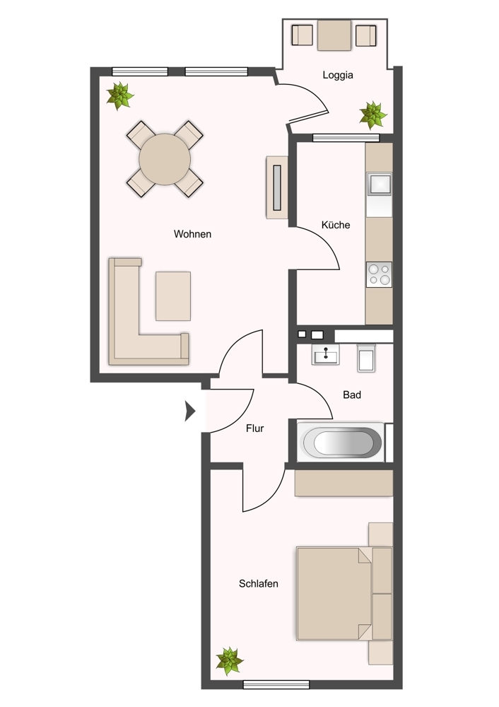 - 2 Zimmer (Schlafzimmer & Wohn-/Essbereich) - Sonniger Balkon mit Blick ins Grüne - Separate Küche mit Sitzmöglichkeit - Badezimmer mit Badewanne - Großer Kellerraum - Eigener Stellplatz in der Tiefgarage - Ruhige Wohnlage im Grünen