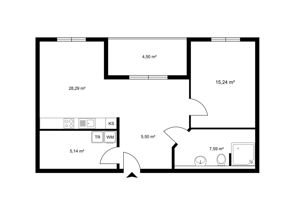 Der großzügige Eingangsbereich geht fließend in den lichtdurchfluteten Wohn-, Ess- und Kochbereich über. Große Fensterfronten schaffen ein helles Ambiente und sorgen für eine offene, einladende Atmosphäre. Der überdachte Balkon ist direkt vom Wohnbereich aus erreichbar und bietet einen geschützten Platz im Freien – ideal für entspannte Momente zu jeder Jahreszeit.