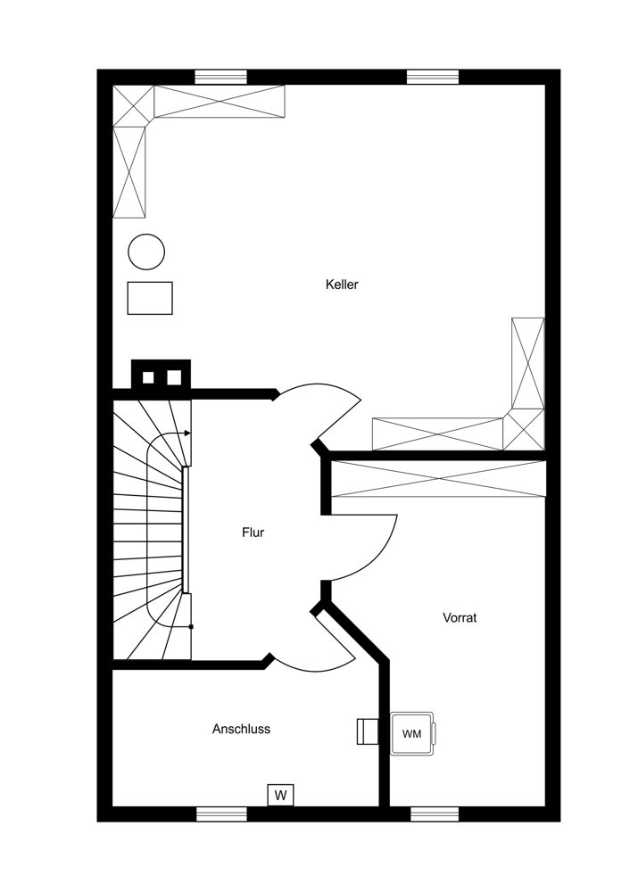 - Voll unterkellert, mit Waschküche, Heizungsraum und Vorratskammer